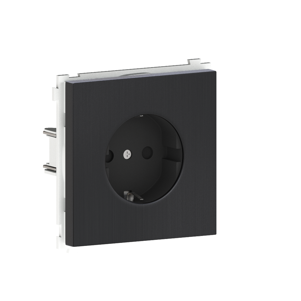 Розетка встраиваемая Donel R98 Metal Schuko с заземлением и шторками на клеммах Вороненая сталь DA19900-DA220GS