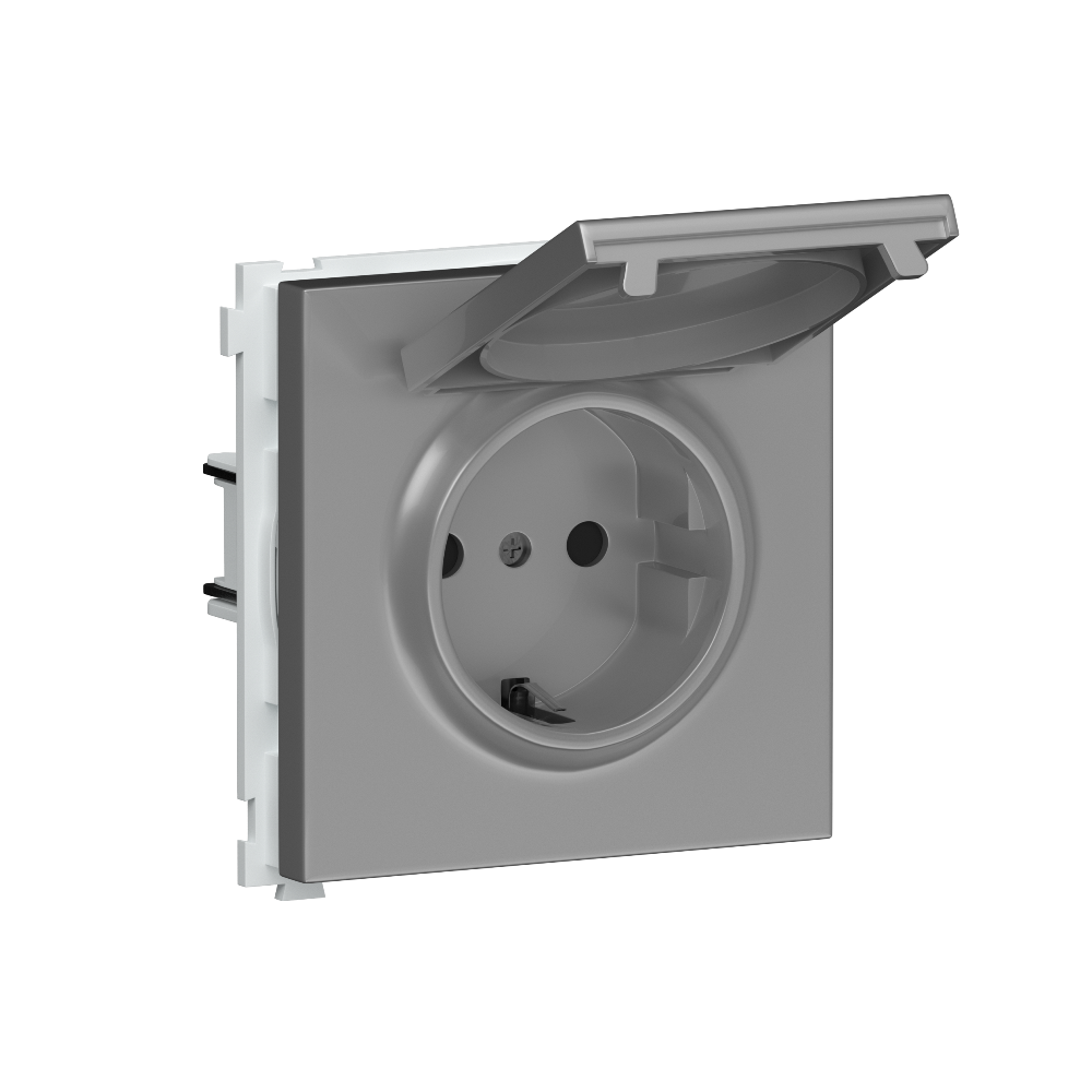 Розетка встраиваемая Donel R98 Schuko с крышкой и заземлением на клеммах Алюминий матовый DA17700-DA45426