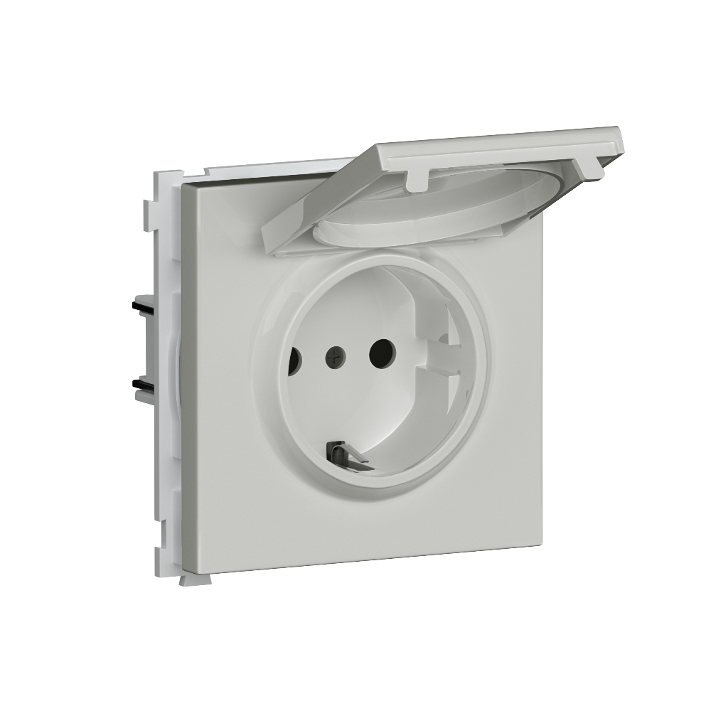 Розетка встраиваемая Donel R98 Schuko с крышкой и заземлением на клеммах Белый глянцевый DA17700-DA45403