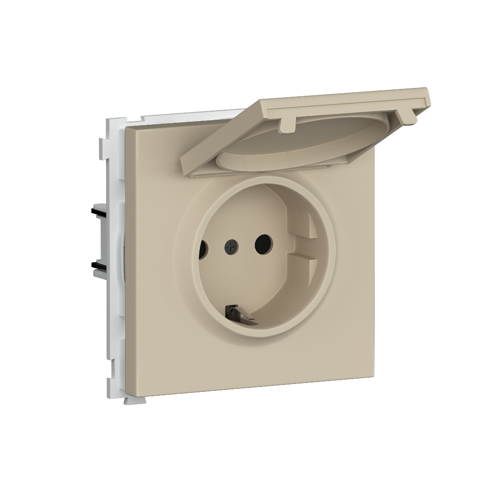 Розетка встраиваемая Donel R98 Schuko с крышкой и заземлением на клеммах Кашемир матовый DA17700-DA45435