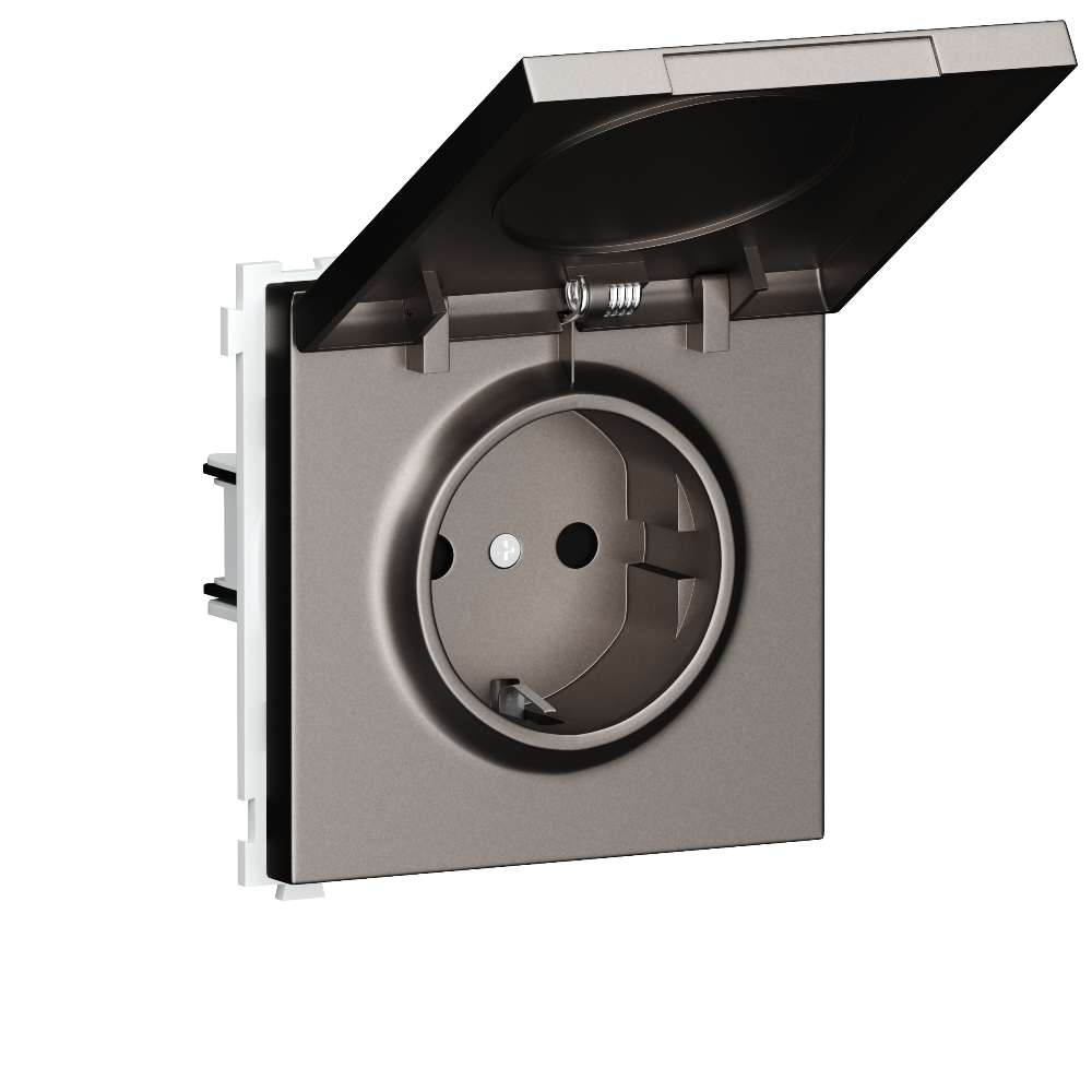 Розетка встраиваемая Donel R98 Schuko с крышкой и заземлением на винтах Сталь матовая DA18800-DA52037