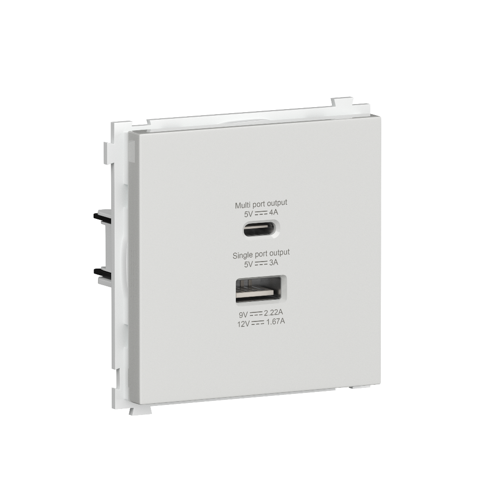 Розетка встраиваемая USB Donel R98 тип A+С быстрая зарядка Белый глянцевый DA20400-DA27703