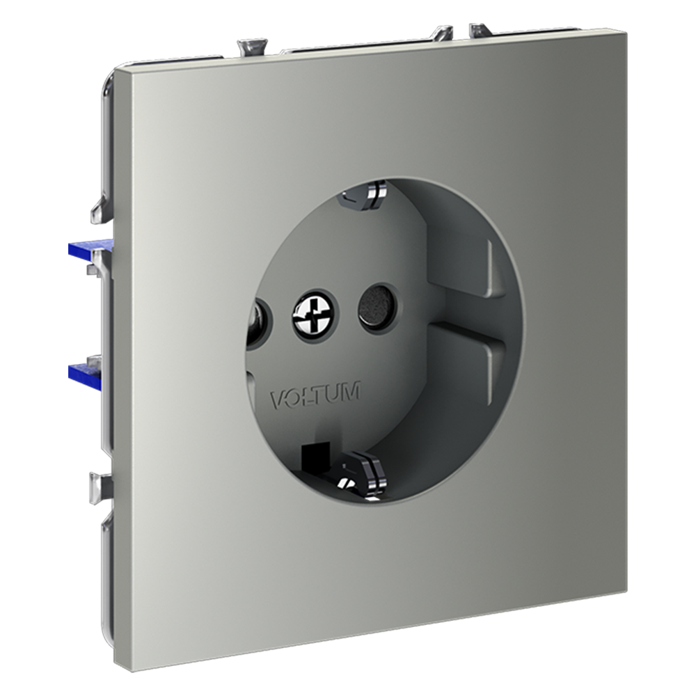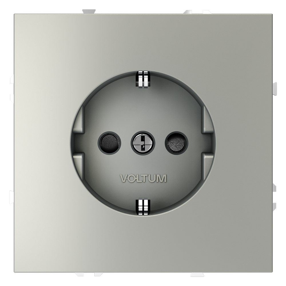 Розетка встраиваемая Voltum S70 с заземлением и шторками Сталь VLS040205
