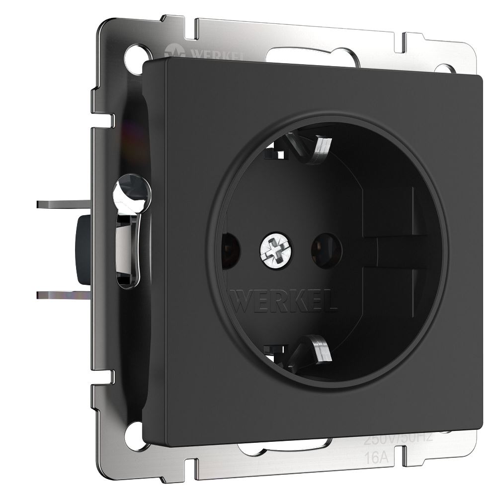 Розетка встраиваемая Werkel с заземлением и шторками Черный матовый W1171108