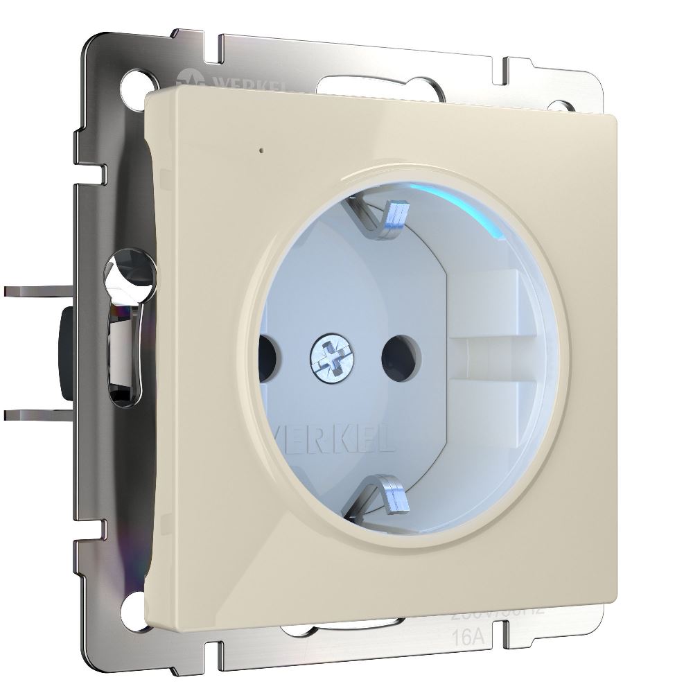 Розетка встраиваемая Werkel W с подсветкой, заземлением, защитными шторками Слоновая кость W1171403