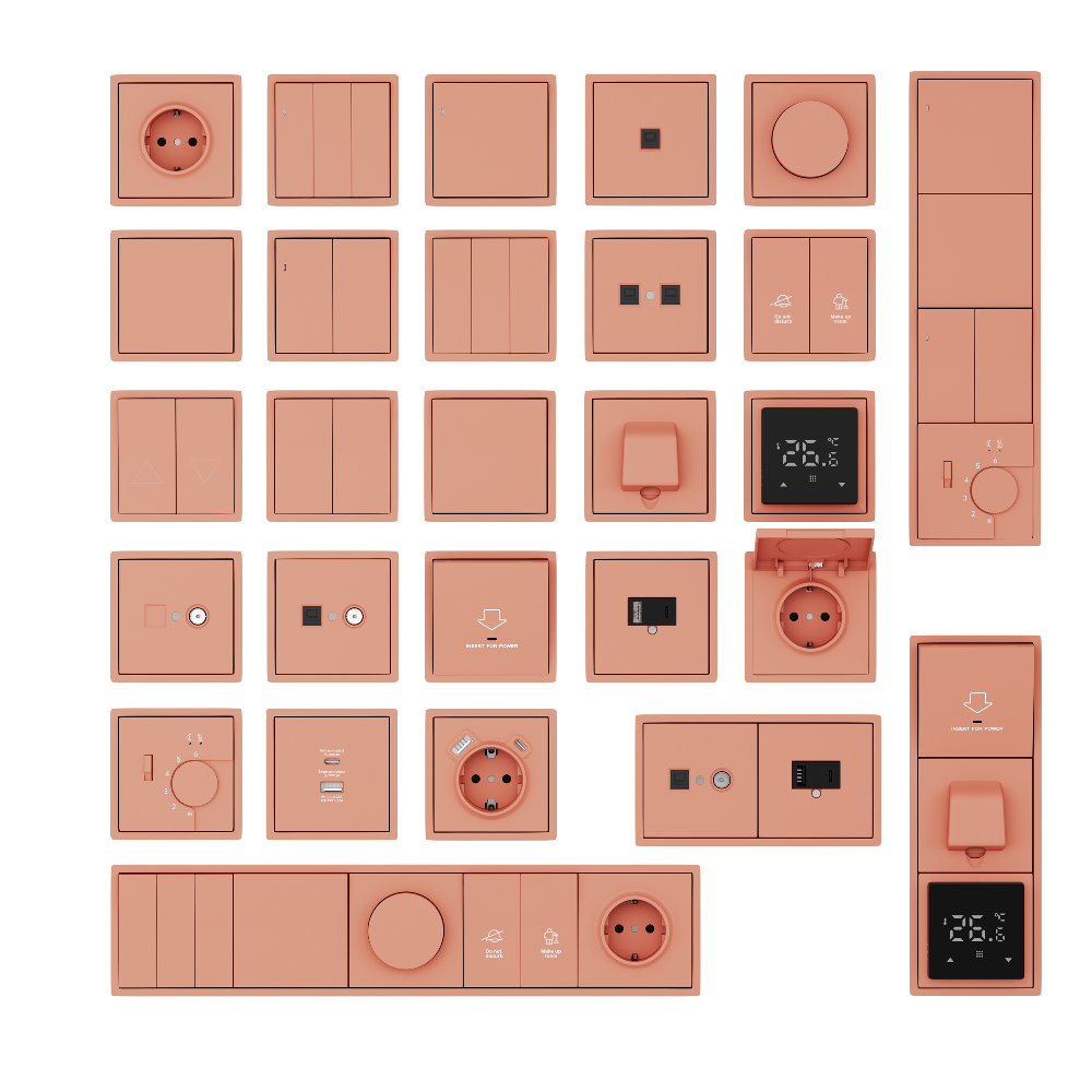 Выключатель двухклавишный встраиваемый проходной Donel R98 с подсветкой Коралл матовый DA03108-DA28545