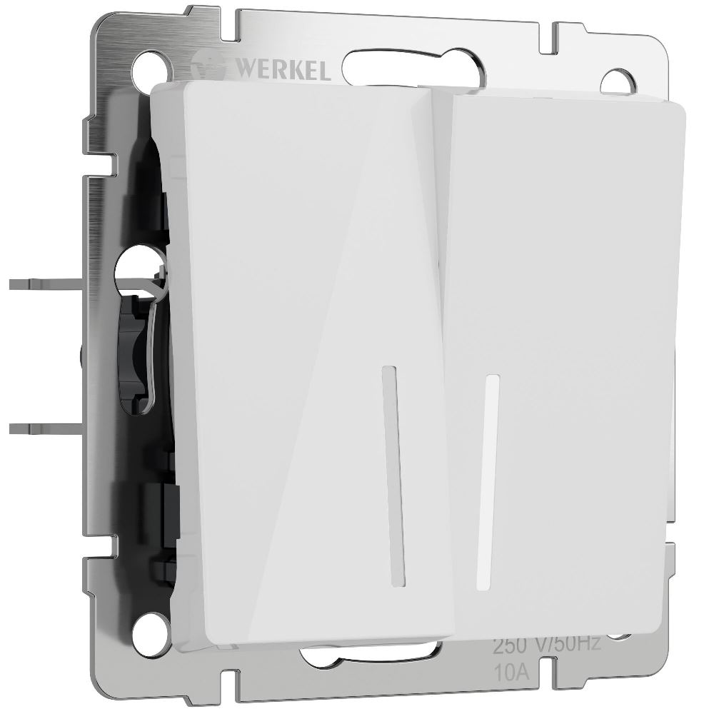 Выключатель двухклавишный встраиваемый проходной Werkel с подсветкой Белый W1122141