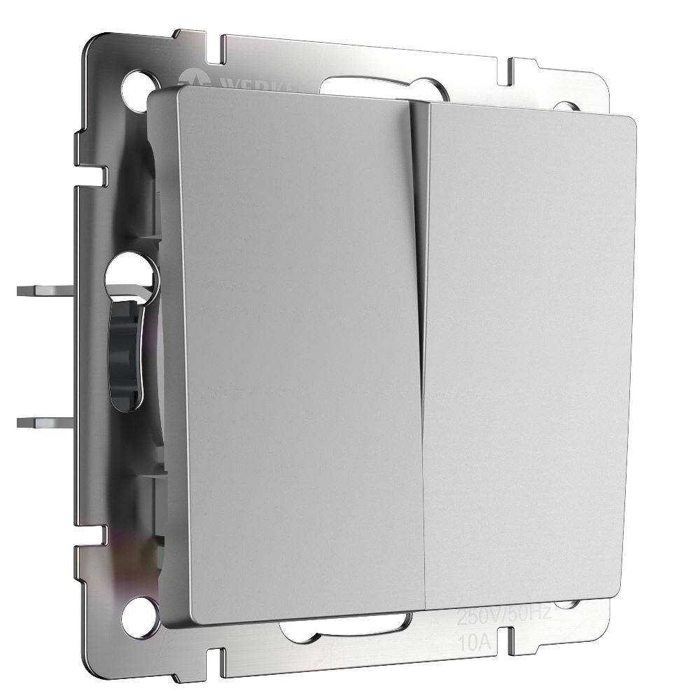 Выключатель двухклавишный встраиваемый с самовозвратом Werkel Cеребряный W1122406