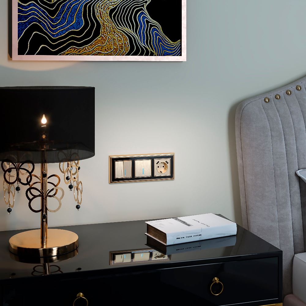 Выключатель одноклавишный встраиваемый проходной Werkel с подсветкой Шампань рифленый W1112110